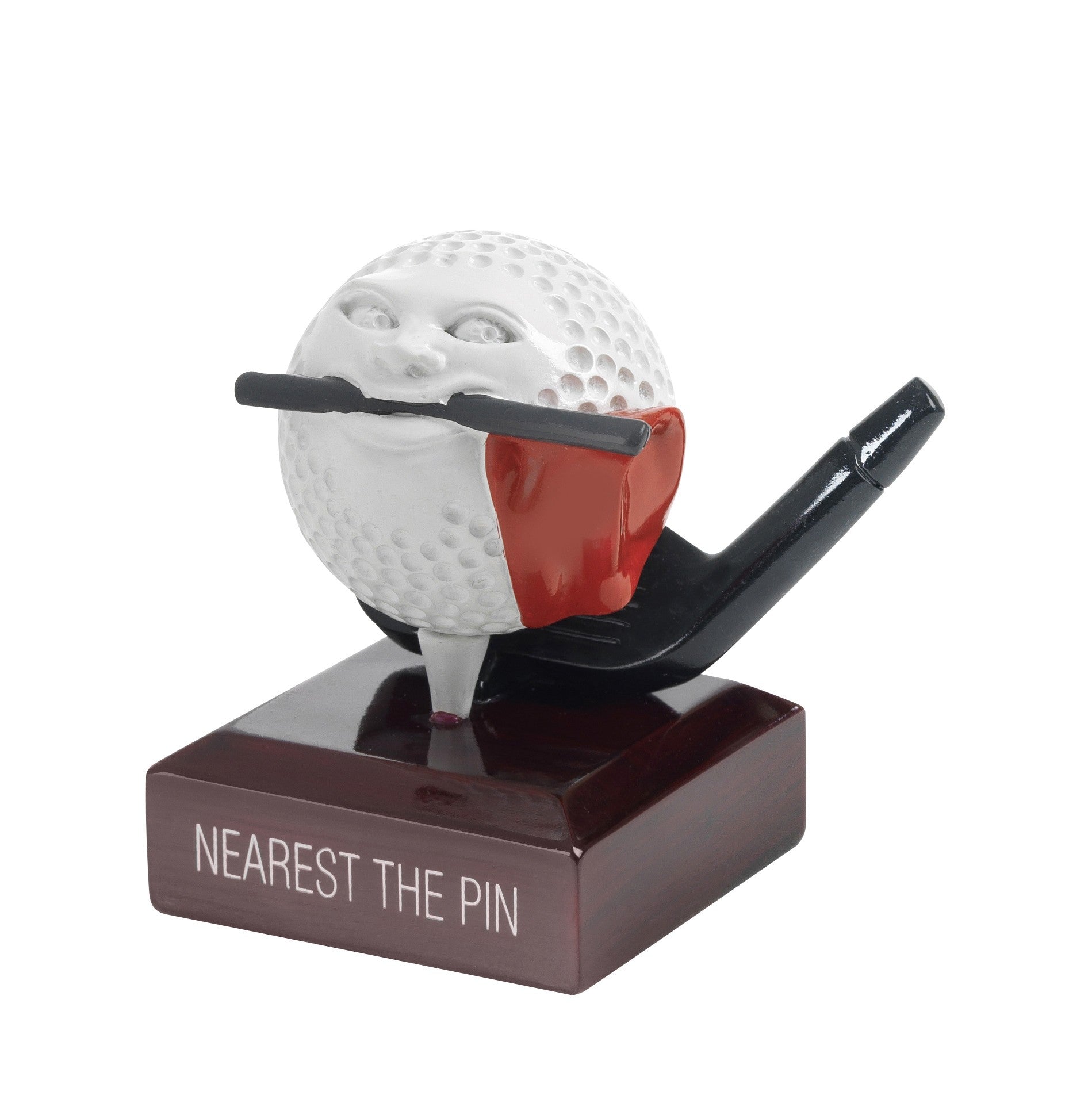 The golf ball character on this award holds the flag in his mouth and also depicts a golf club. A great little award for the winner of the 'Nearest the Pin' title of your match.