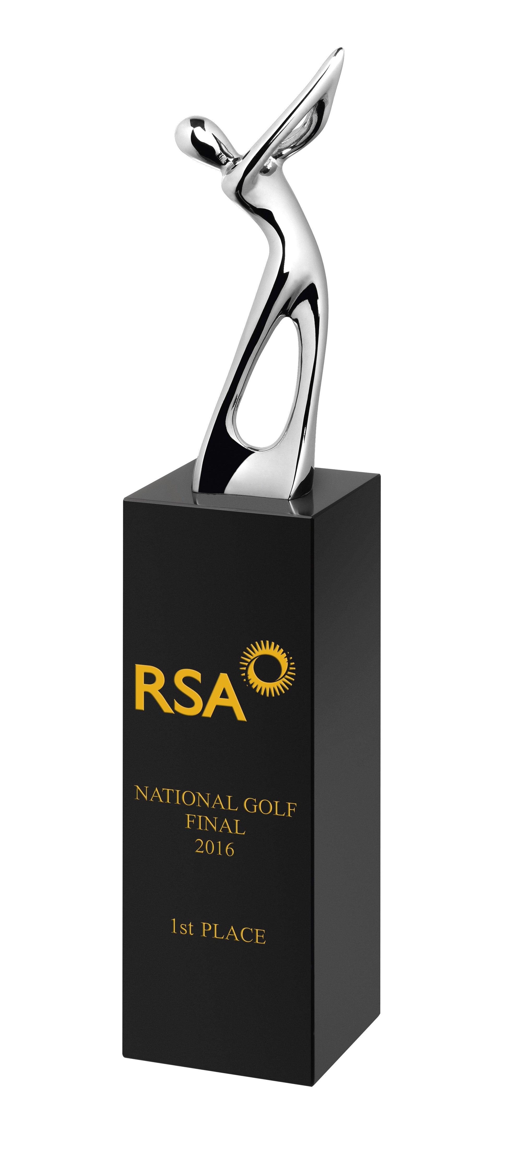 This Modern Optical crystal golf award comes with an elegant metal swinging golfer mounted on top of a stunning black crystal base. The ample engraving area makes this award perfect for engraving your company logo'crest and personalised message. Award comes with presentation case.