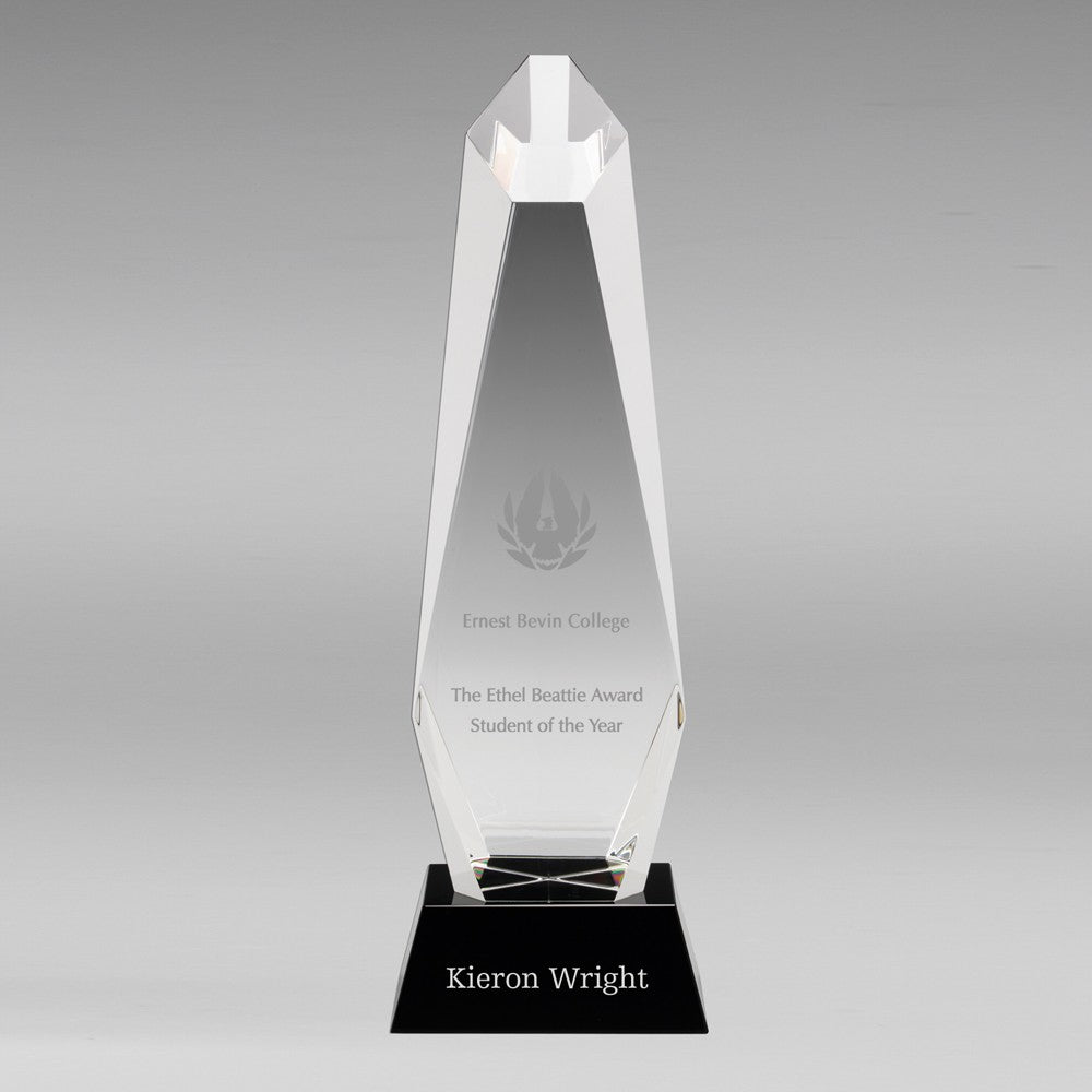 Beautifully crafted hexagonal glass columned award. It's simplicity in design means it's ideal for recognising a multitude of achievements, from Student of the Year to Most Improved.