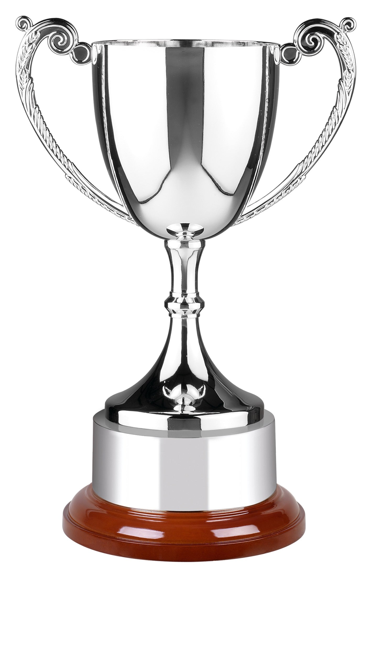 An impressive nickel plated cup with ornately patterned handles. This superb award can be engraved to give that perfect finishing touch and is available in 6 sizes. These awards come with an integral plinth band that can be engraved with annual winners. A truly magnificent cup for all sporting or corporate occasions.