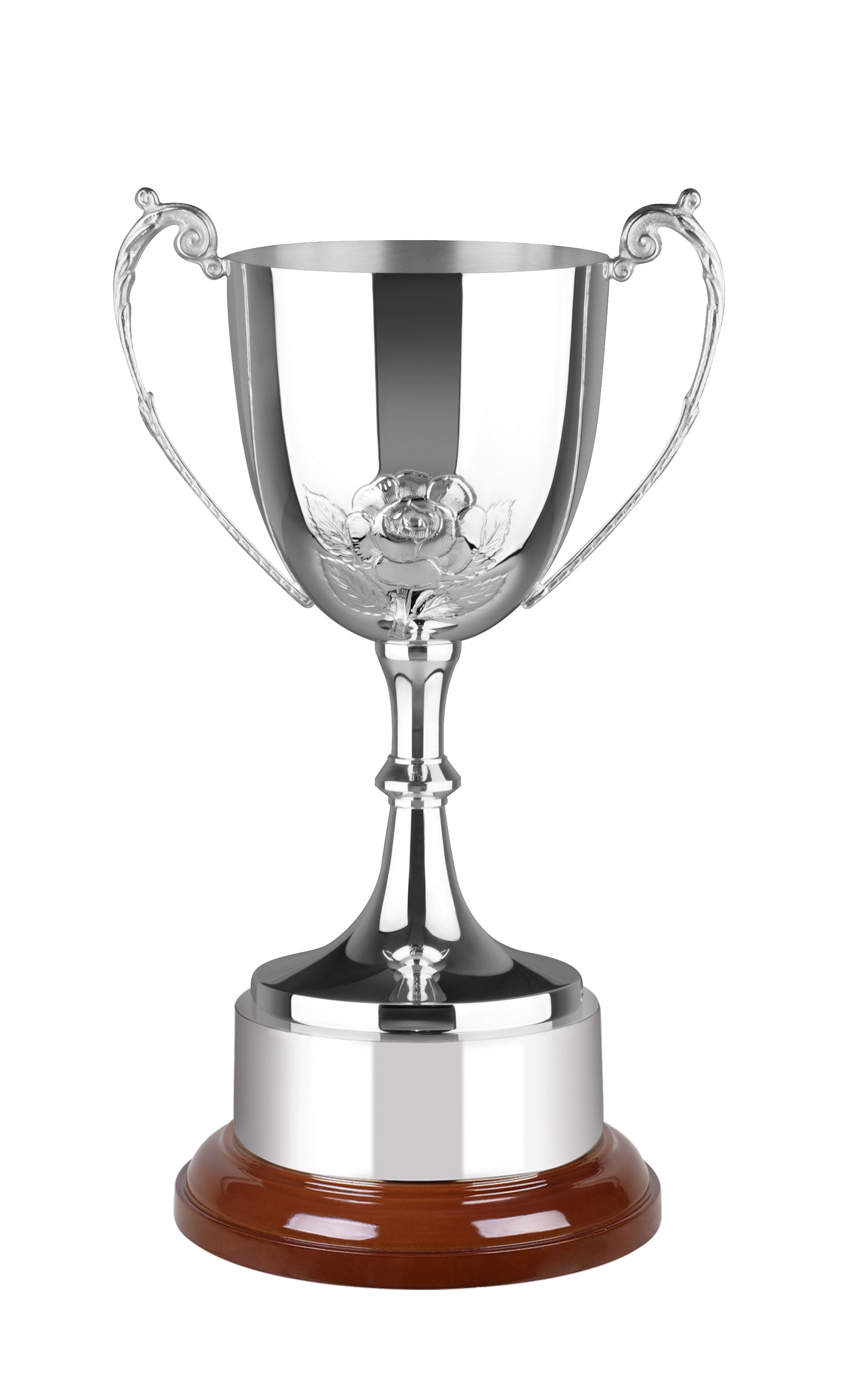 The ENGLISH ROSE cup is hand chased on the base of the cup with a beautiful depiction of the classic English rose. This award stands on an integral mahogany base and silver plated plinth. Manufactured in Britain this slim line and elegant cup can be engraved with your personal message.