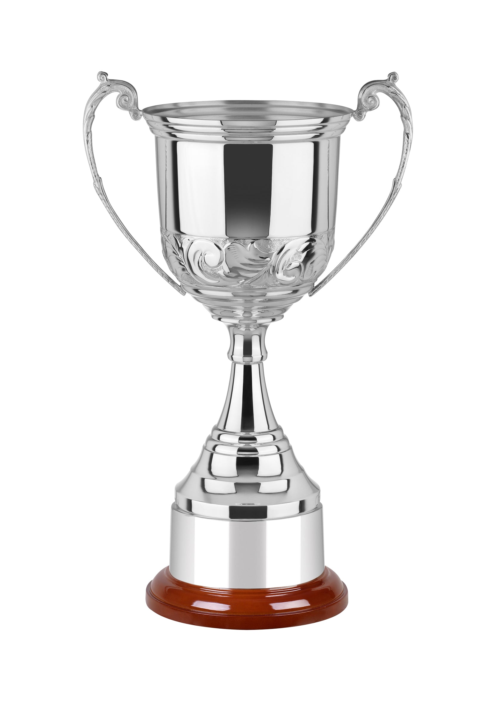 This 33.5cm high nickel plated presentation cup with nickel plated finish would be perfect to award to any winning individual, mark a team achievement or present to any runner-up. It's attractive finish and superior design, will makes any achievers efforts worth while. Engrave this product on the body and the plinth if you wish. See the options below or call to discuss your requirements.
