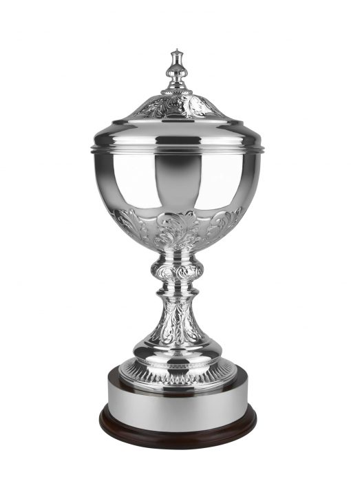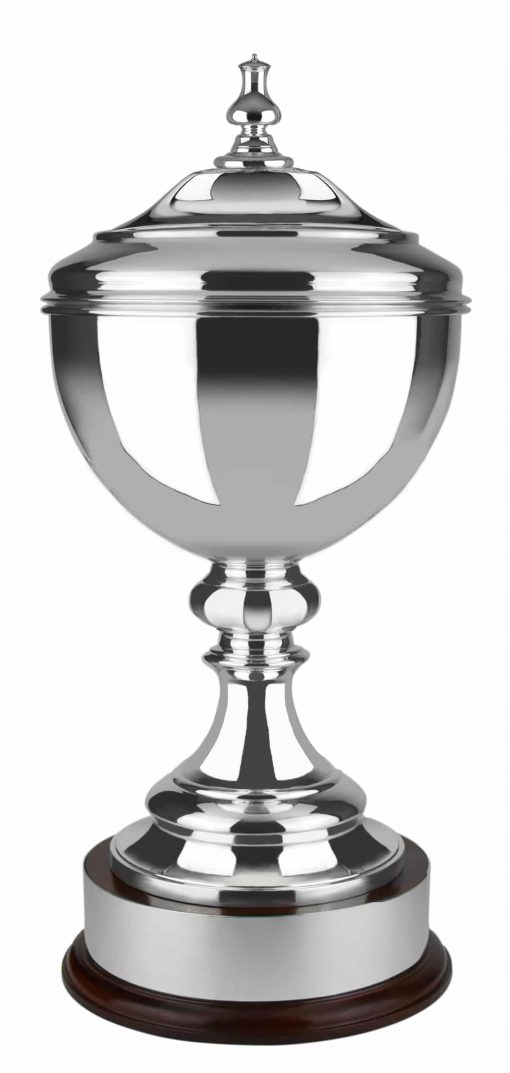 Handmade in Britain, this Ultimate Silver Plated presentation trophy cup features a highly polished body, stem and foot. It can be very beautifully hand chased on the body, stem, foot and lid. It is supplied complete with a mahogany plinth, a Silver Plated plinth band and lid.
