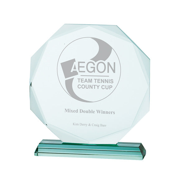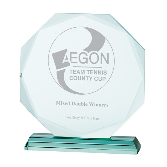 A lovely jade crystal plaque at 15cm high it is fit for any winning team or individual. The perfect trophy to mark a special victory. Upload a logo or club emblem, which can be applied to the award as well as your text. Engrave this award with a unique message and if you wish. Engraving is included in the price of the award.
