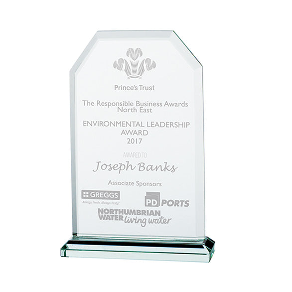 This 12.5cm high jade crystal jade plaque award is the perfect trophy for any star. An award that will stand out on any mantel piece. You can also upload a logo or emblem, that can be engraved on this award. This award can be engraved with a message of your choice just click Customise and Buy below to enter your engraving details.