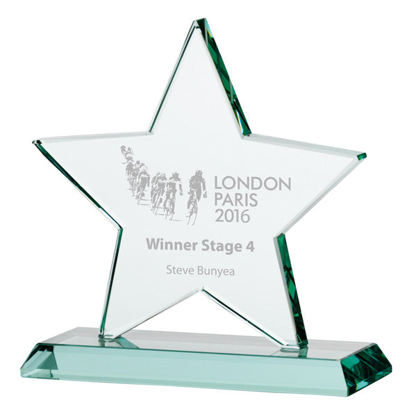 This 13.5cm high jade crystal jade plaque award is the perfect trophy for any star. A plaque award that is fitting for any deserving achievement. Upload a logo or club emblem, which can be applied to the award as well as your text.