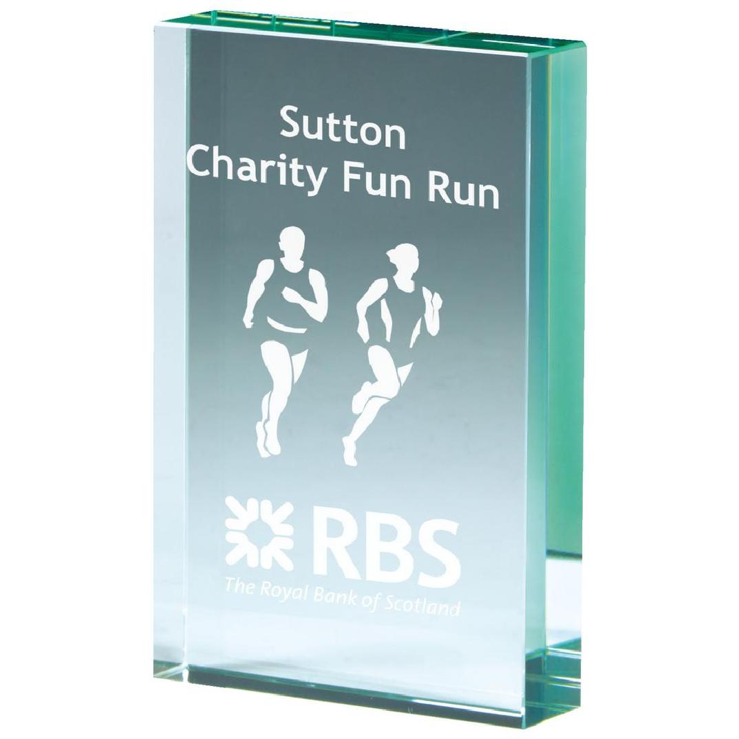 This 9cm high jade jade glass jade plaque award is the perfect trophy for any all purpose star. It will be received and displayed with pride. Engrave this award with a unique message and if you wish. Engraving is included in the price of the award.
