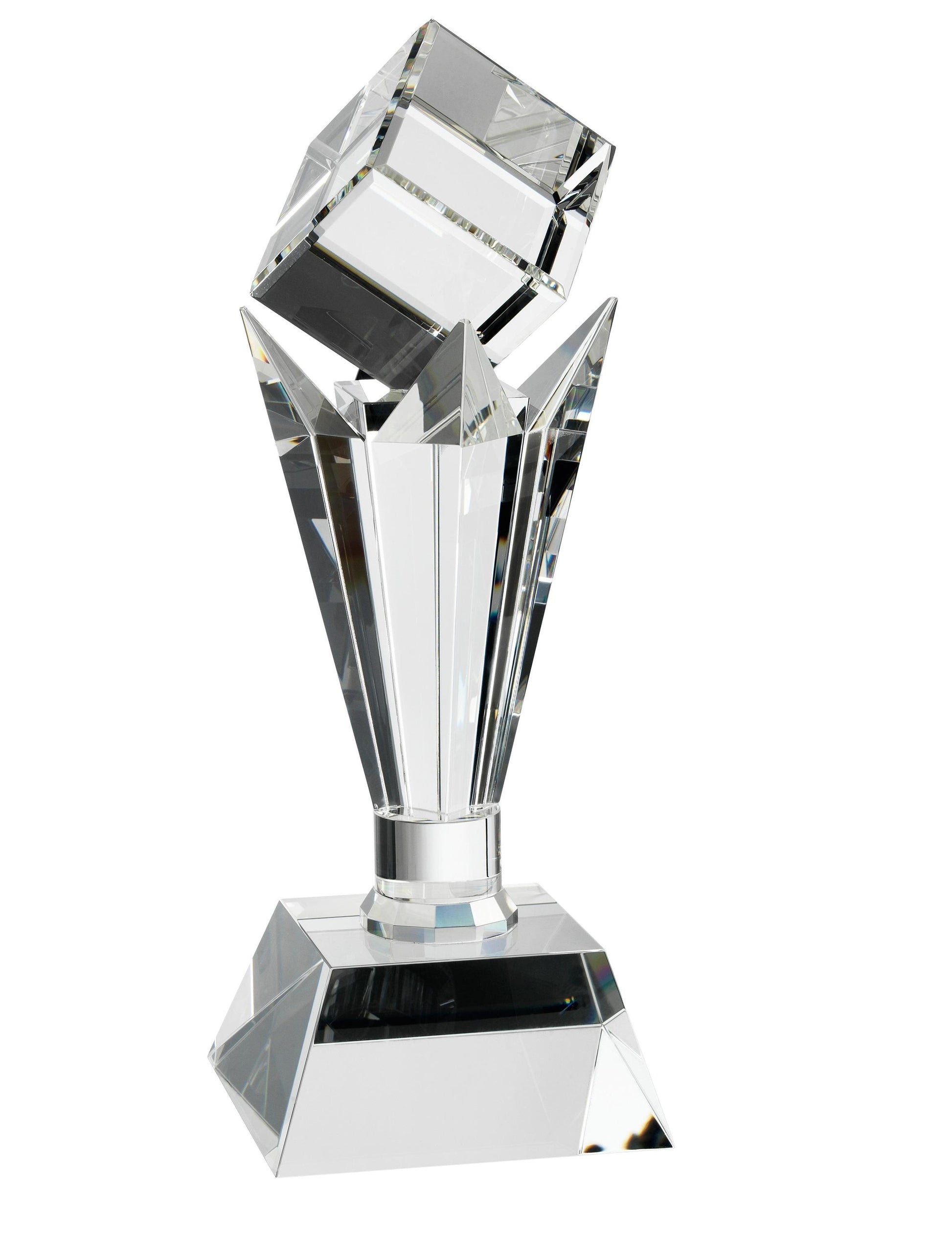 This crystal mirage award has beautiful light reflecting qualities. The heavy base is suitable for engraving your own message, and the award comes in a fantastic presentation box. The trophy is available in 3 sizes.