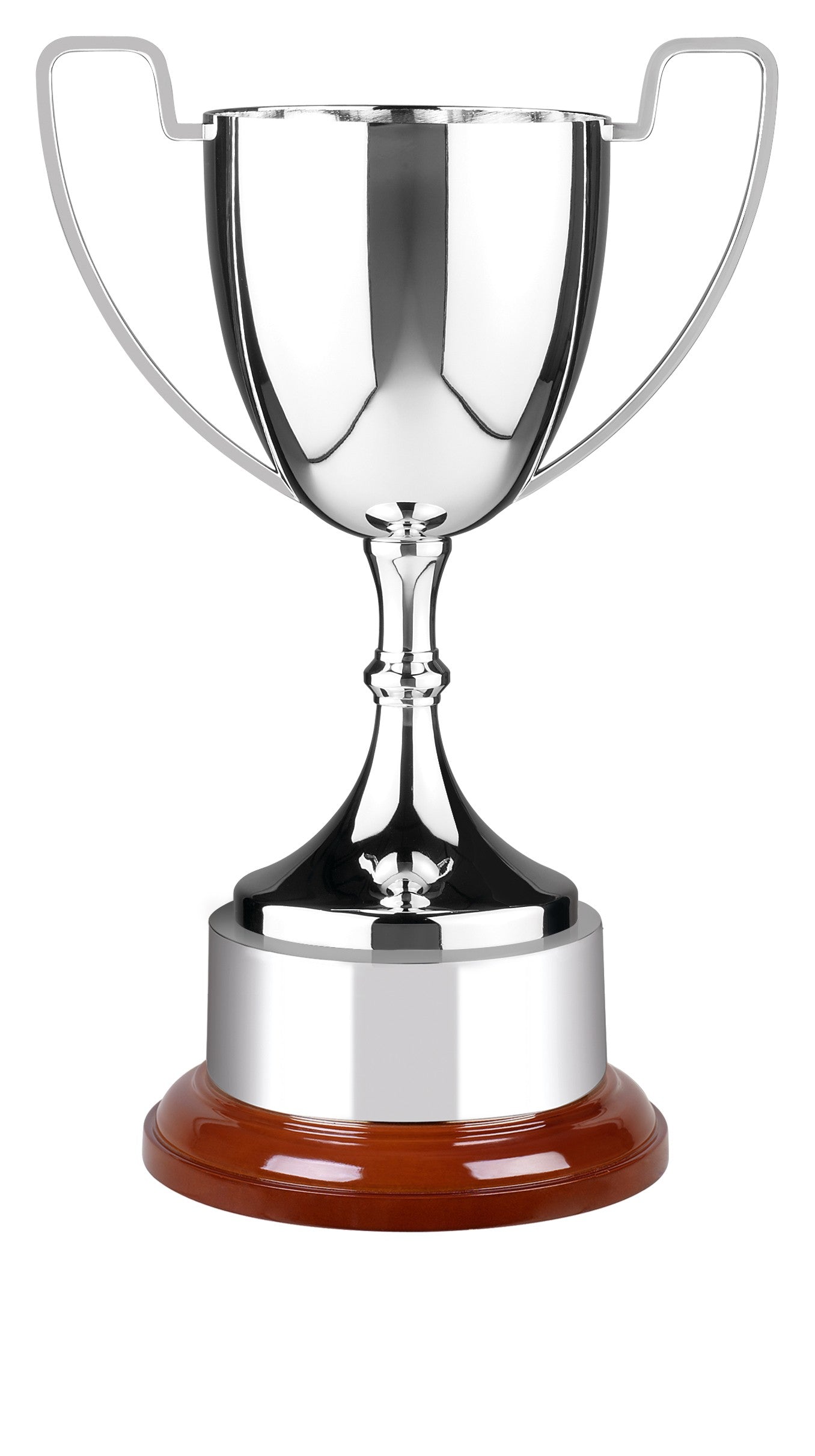 This majestic nickel plated cup has been crafted in a simple yet elegant design featuring plain but stylish handles. This superb award can be engraved to give that perfect finishing touch. This cup is available in 6 sizes and is supplied complete with an integral plinth band that can be engraved with annual winners.
