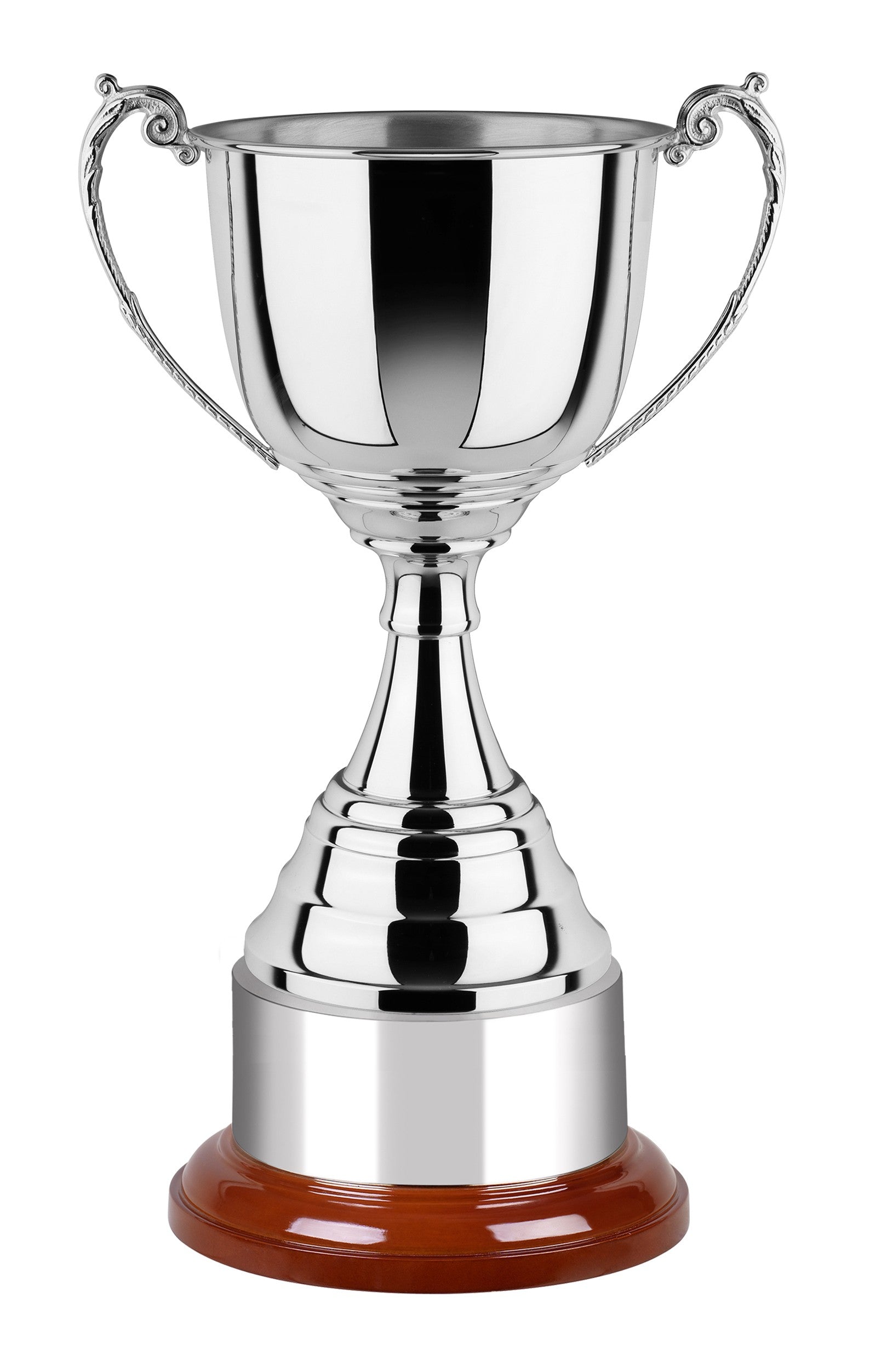 This 43cm high nickel plated presentation cup with nickel plated finish would be perfect to award to any winning individual, mark a team achievement or present to any runner-up. A trophy that will take pride of place for years to come. Engrave this product on the body and the plinth if you wish. See the options below or call to discuss your requirements.