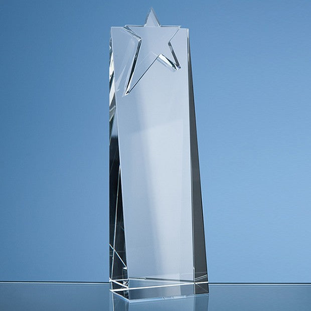 The modern looking Star Rectangle award is hand crafted out of perfectly clear optical crystal. The Star Rectangles are available in 3 sizes and benefit from a large engraving area that can be personalised with any crest, logo or wording to create an award that is sure to take pride of place when put on display at home or at work. It is an ideal recognition, achievement or incentive gifts and is supplied in a black foam lined presentation box.