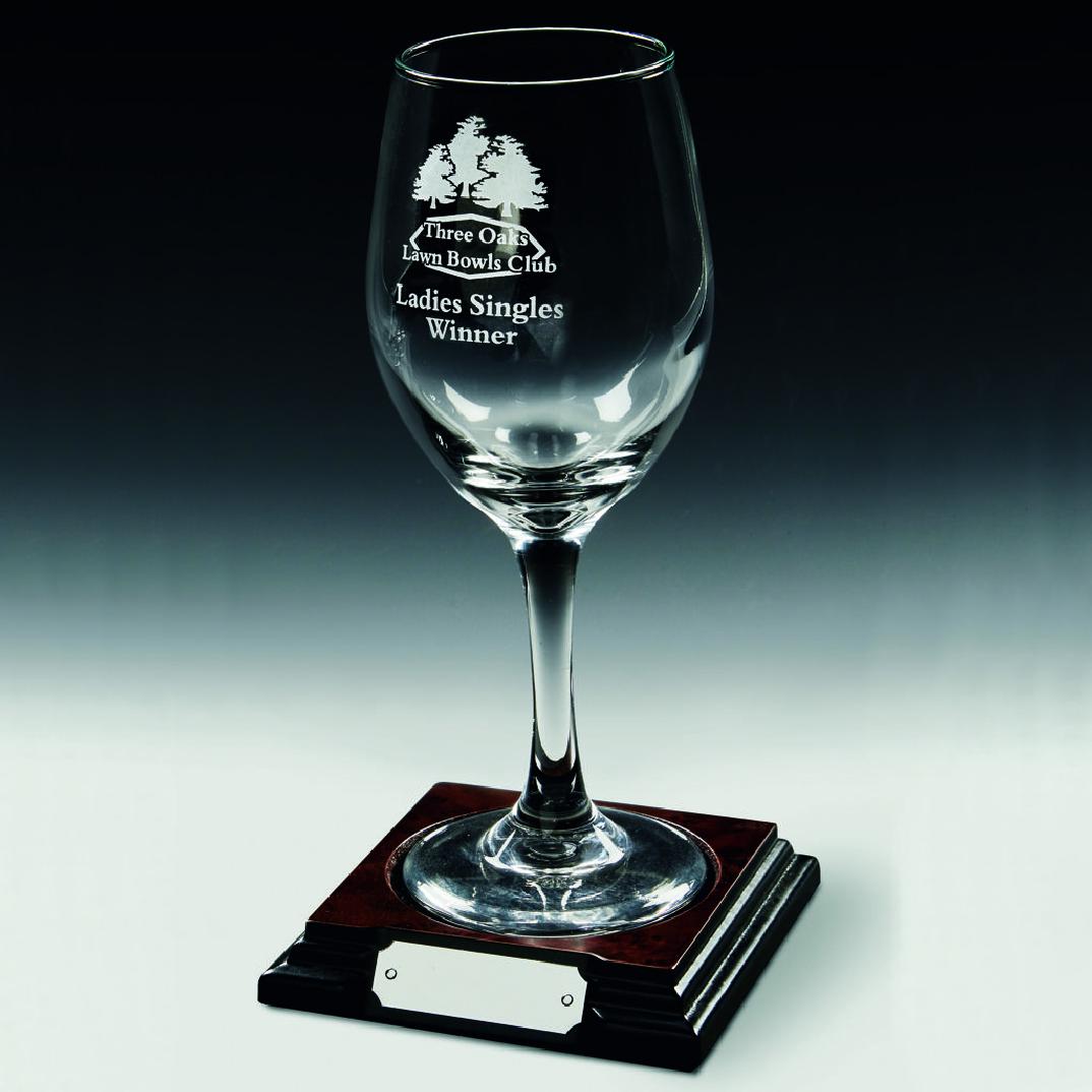 Single Wine Glass on Wood Base